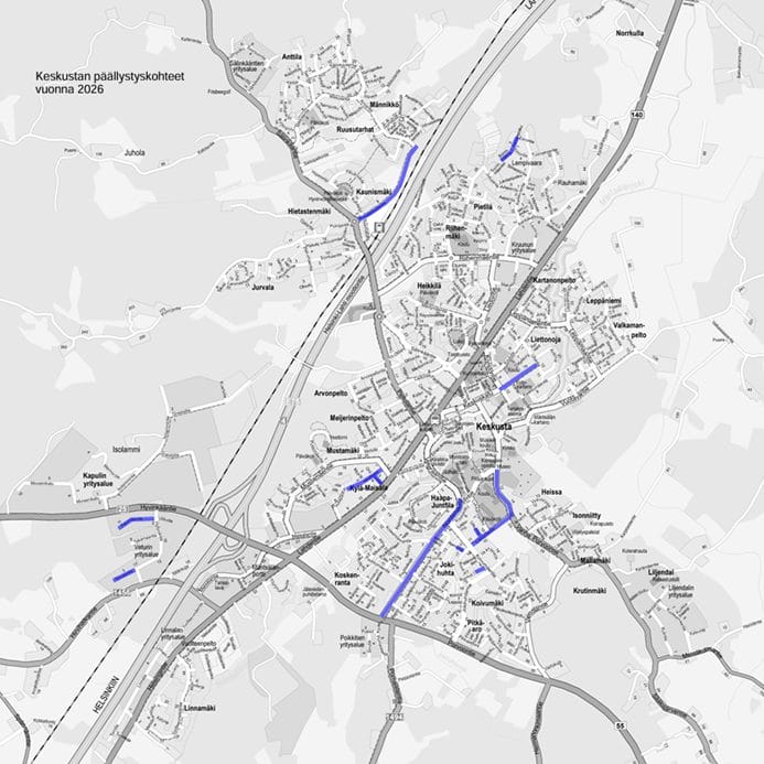 Kevät tuo mukanaan muutakin kuin valoa ja lämpöä – myös katu-urakat etenevät keskustaajamassa. Viime vuonna käynnistyneet urakat jatkuvat touko–kesäkuussa, ja samalla käynnistyvät kauden päällystys- ja asfaltointityöt.
