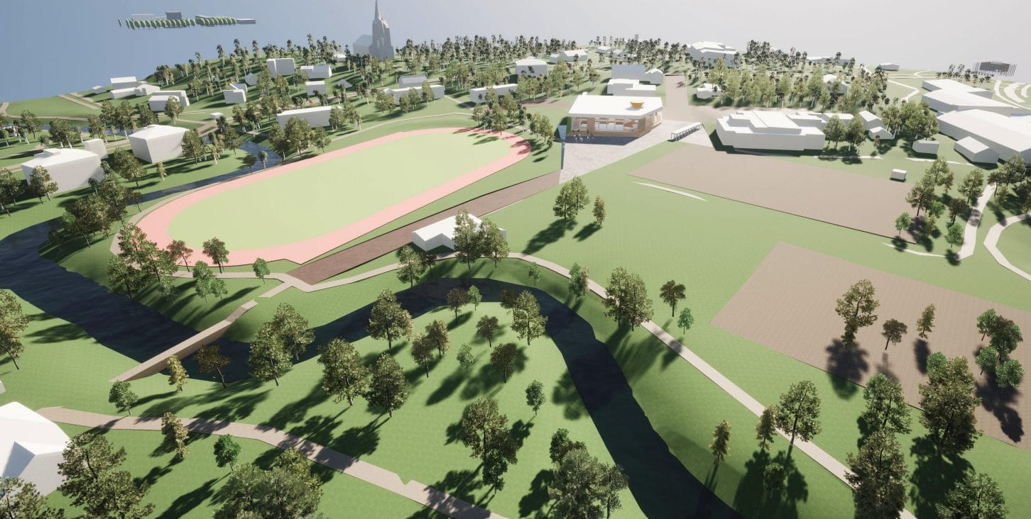Viheryhteydet kirkonmäen ja urheilupuiston välillä säilyisivät ja niitä on tarkoitus kehittää osana kokonaisuutta.