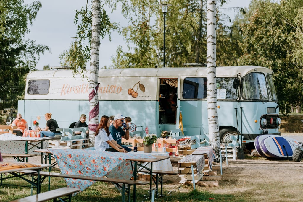 Mervi oli jo kauan haaveillut myös kiertävän kahvilatoiminnan perustamisesta. Haave toteutui osittain, kun hän perusti viime kesänä Mäntsälän keskustan jokirantaan Kirsikkapuisto-nimisen kahvilan. Kahvilan virkaa tekee Kajaani-Kuopio -postireittiä aikoinaan ajanut Bedford vuosimallia 1965 ja sen edessä kierrätyskalustein varustettu ruohokenttä.