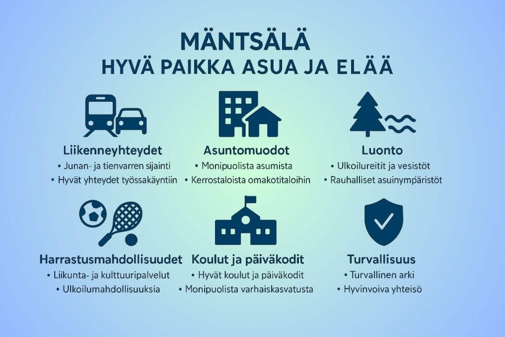 Asuminen on Mäntsälässä edullisempaa kuin monilla lähialueilla, ja arki sujuu ilman jatkuvaa jonottamista tai ruuhkissa istumista.