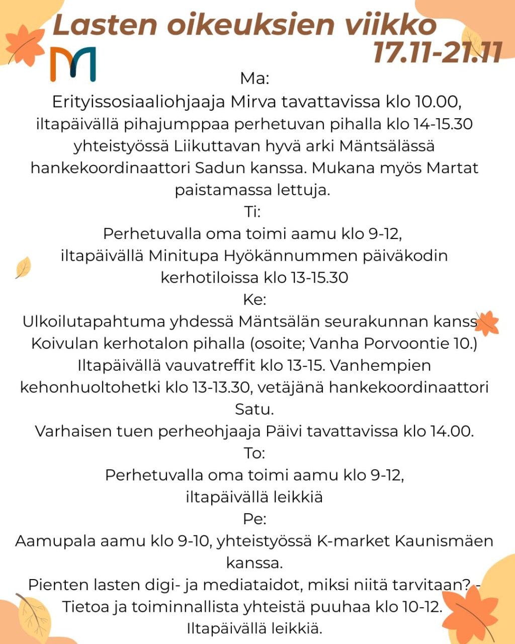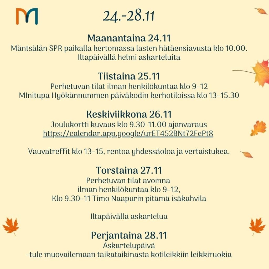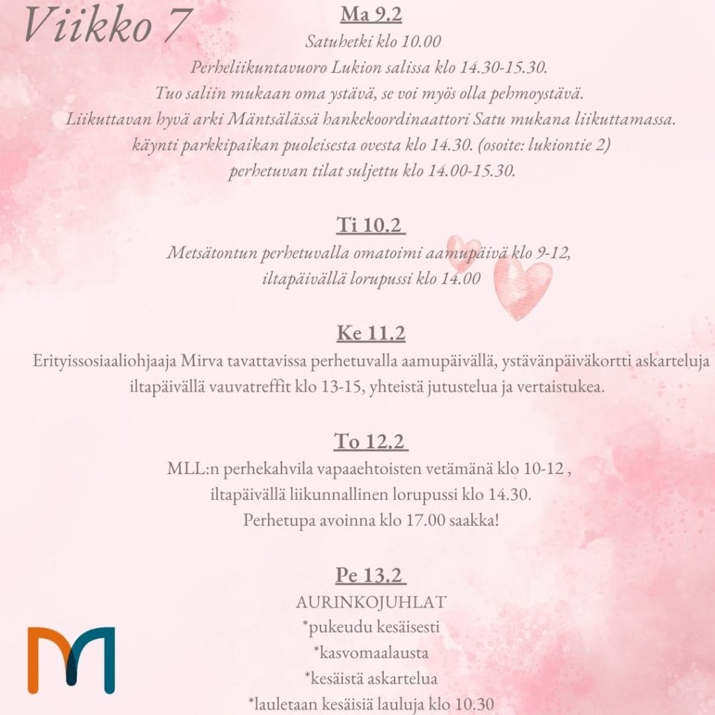 Metsätontun viikko-ohjelman ja muut ajankohtaiset asiat löydät lisäksi Facebookista. Facebook sivumme löytyy nimellä METSÄTONTUN PERHETUPA ja Instagramista metsatontunperhetupa. Seuraathan ilmoitteluamme mahdollisuuksien mukaan somesta.