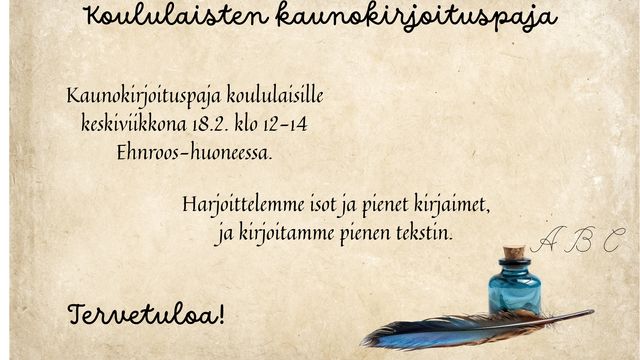 Yhteystiedot: Mäntsälän kunta, Kulttuuripalvelut, Heikinkuja 4, 04600 Mäntsälä, p. 040-3145 397